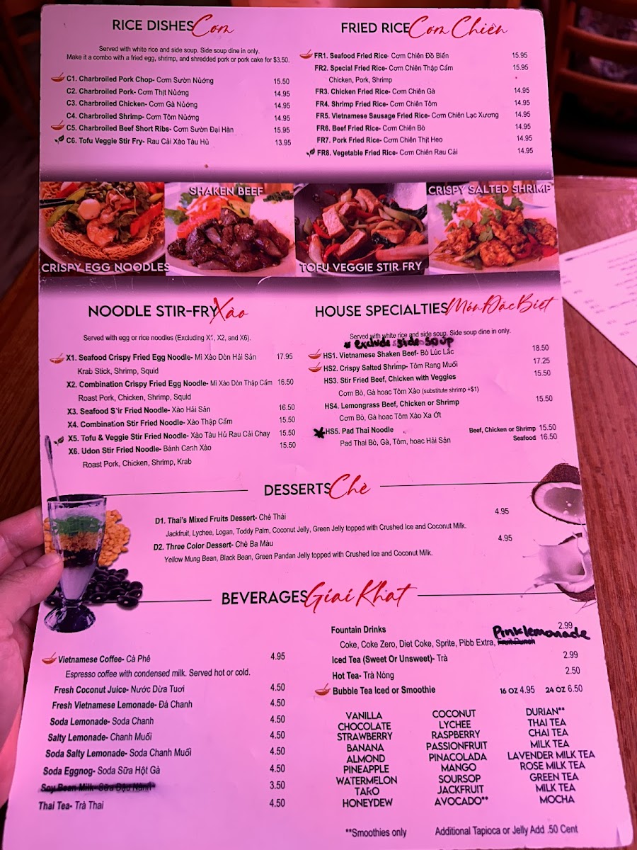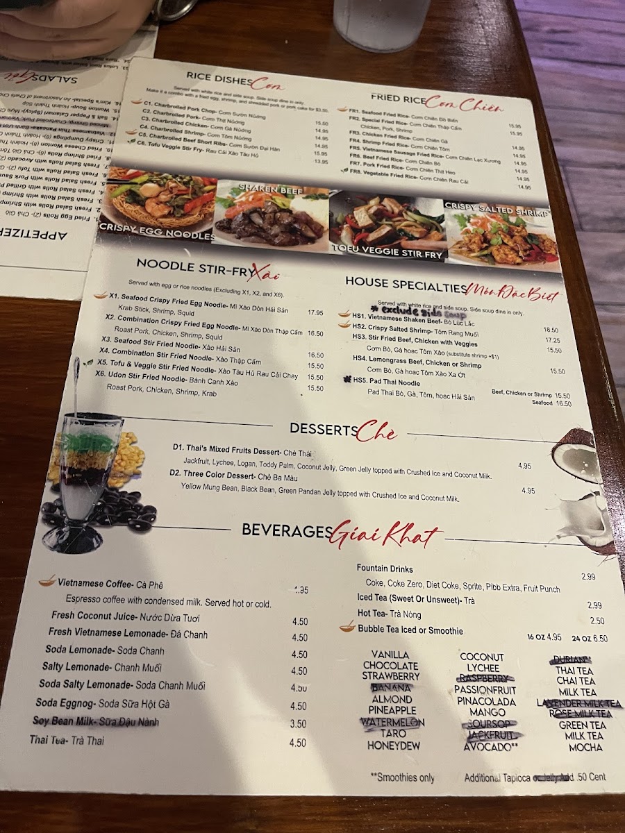 - Desserts like Thai's Mixed Fruits, providing a sweet finish to your meal at just $4.95.